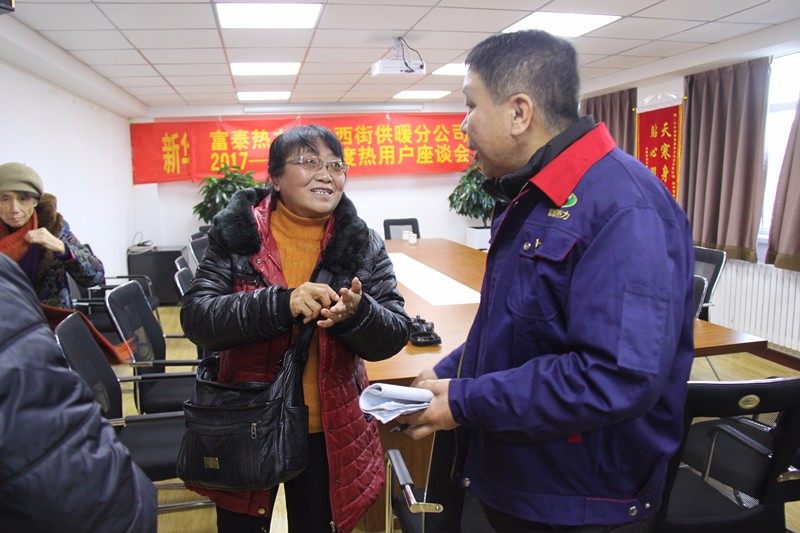 在新華西街供暖分公司舉辦的用戶座談會上,熱用戶代表對分公司今年的供熱工作給予了充分肯定,特別對分公司工作人員加班加點為他們排除供熱故障以及認真負責的工作態(tài)度表示感謝,同時就解決個別用戶家中暖氣不熱等問題提出了希望和建議,針對熱用戶提出的問題和訴求,分公司負責人一一做了解答,并表示一定要認真對待大家的意見建議,切實加大工作力度,以實實在在的行動千方百計為用戶排憂解難。